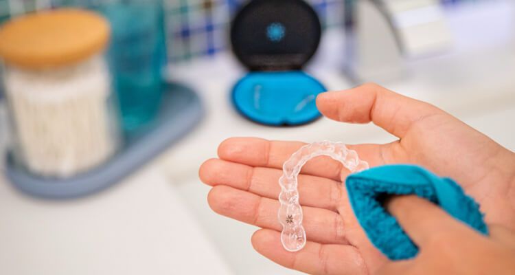 - Wir empfehlen, die Zähne während der Behandlung mit Invisalign möglichst dreimal täglich zu putzen. Unterwegs und nach dem Essen reicht es in der Regel aus, den Mund gründlich mit Wasser auszuspülen, falls keine Zahnbürste zur Hand ist.