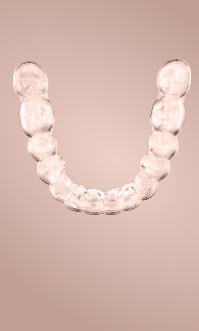 Die transparenten Aligner bestehen aus einem robusten, thermoplastischen Kunststoff, der speziell für Invisalign entwickelt und für den medizinischen Einsatz zugelassen wurde.
